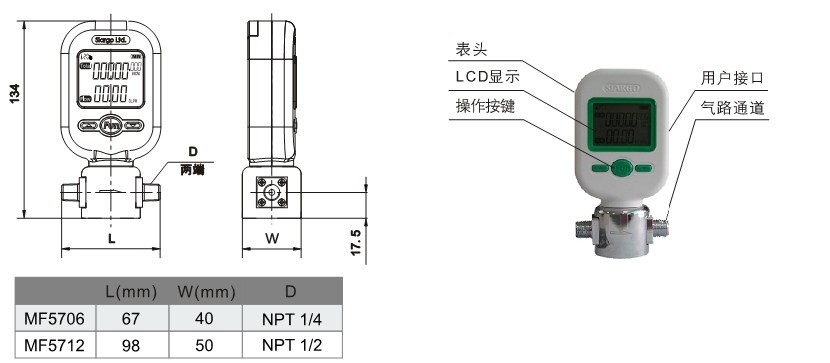 MF5706微型氣(qi)體質量(liang)流量計(ji)0-25L/min